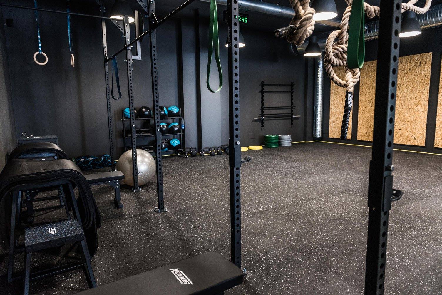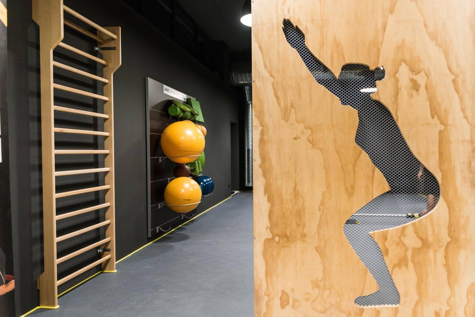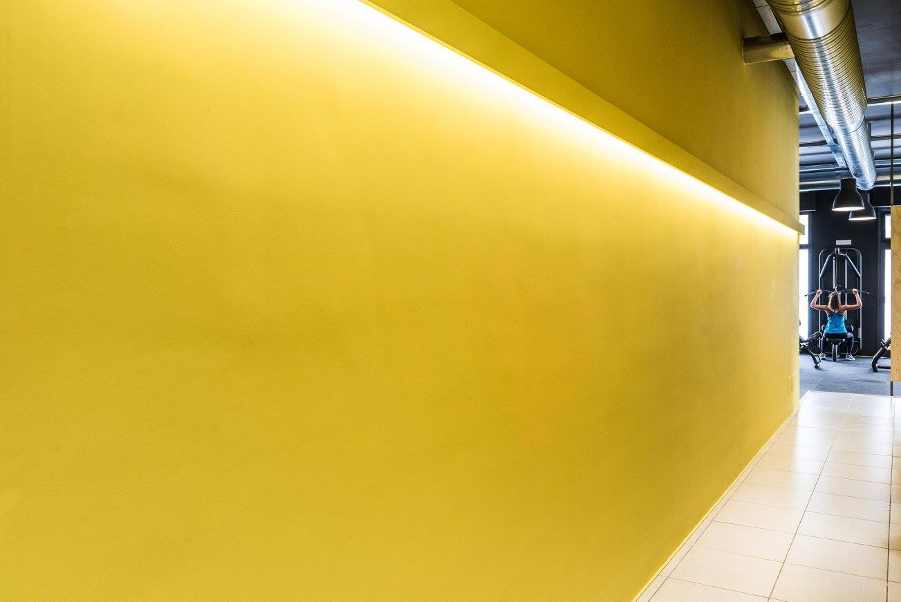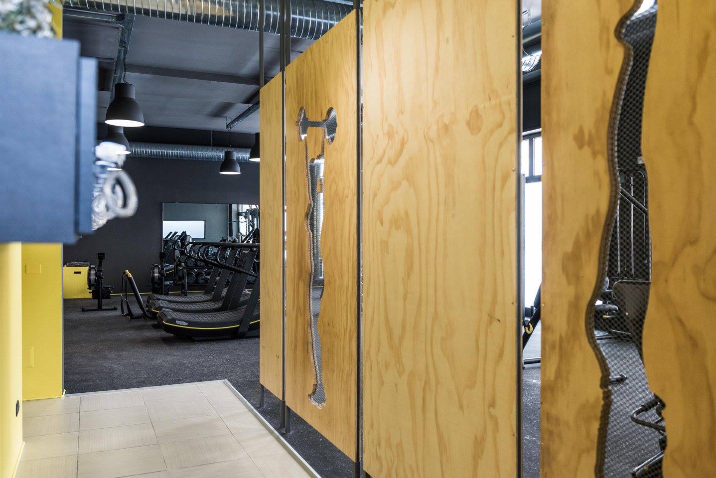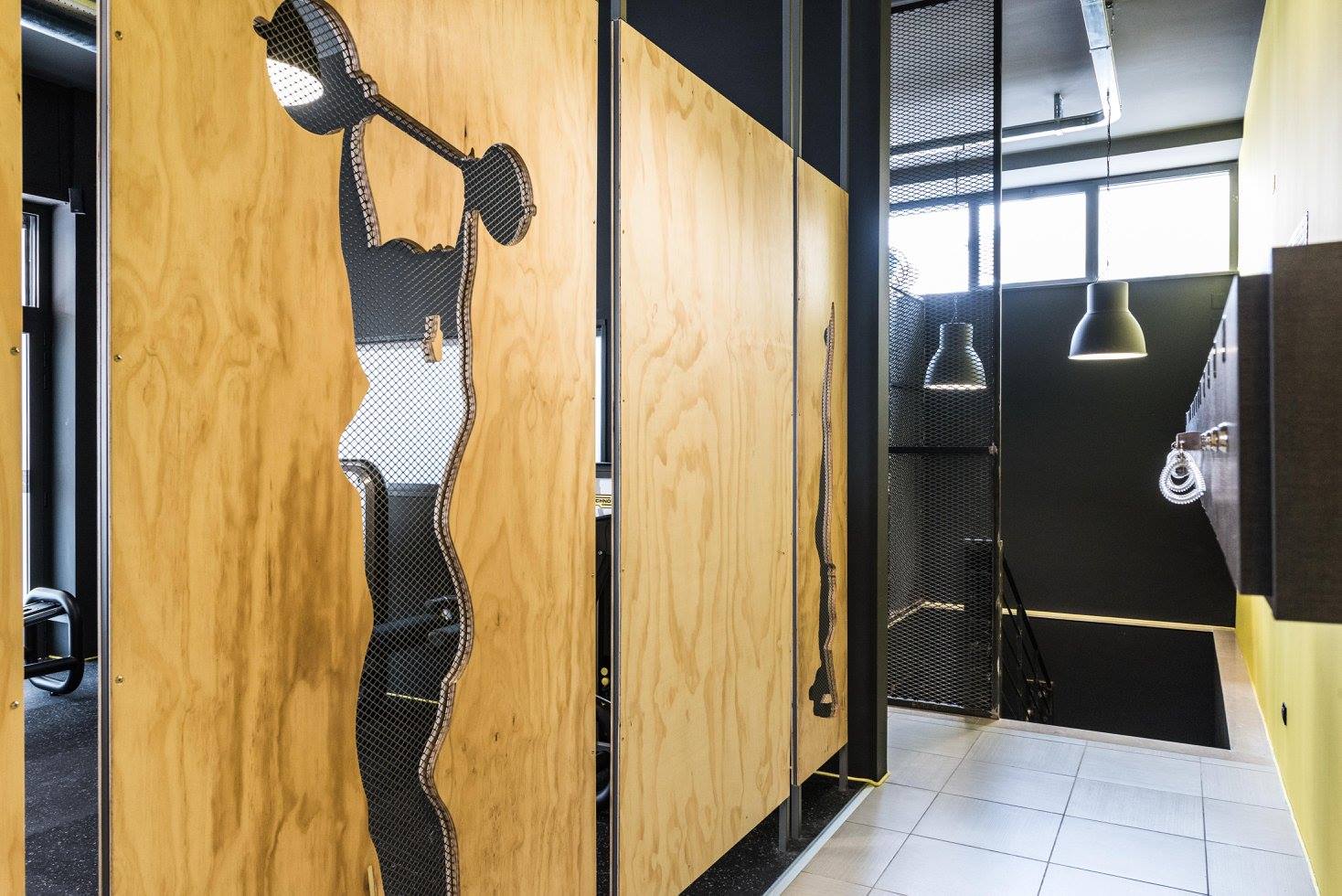 La palestra Jump, situata ad Altamura, si ripropone con un nuovo mood: ferro grezzo, lamiera forata e legno naturale si combinano per dar vita ad atmosfere metropolitane ed industriali. Lo spazio è concepito in maniera libera, privo di partizioni in muratura e porte, suddiviso semplicemente da pannelli in legno naturale traforati con grafiche a tema. Attraverso una scala in ferro grezzo, delimitata da pannelli in lamiera forata, si accede al piano interrato dove si sviluppa il box crossfit dallo stile americano, con pareti e soffitti in cemento grezzo, pavimento in gomma nera e impianti a vista. Le superfici scure e l’illuminazione essenziale creano un involucro avvolgente che dona concentrazione, comfort e relax a chi effettua gli esercizi ginnici.