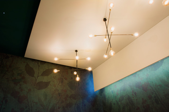 Il progetto illuminotecnico, infine, ha previsto l'utilizzo di piccoli e puntuali faretti ad incasso creando in gioco di luci e ombre che esaltano e definiscono le zone del convivio.