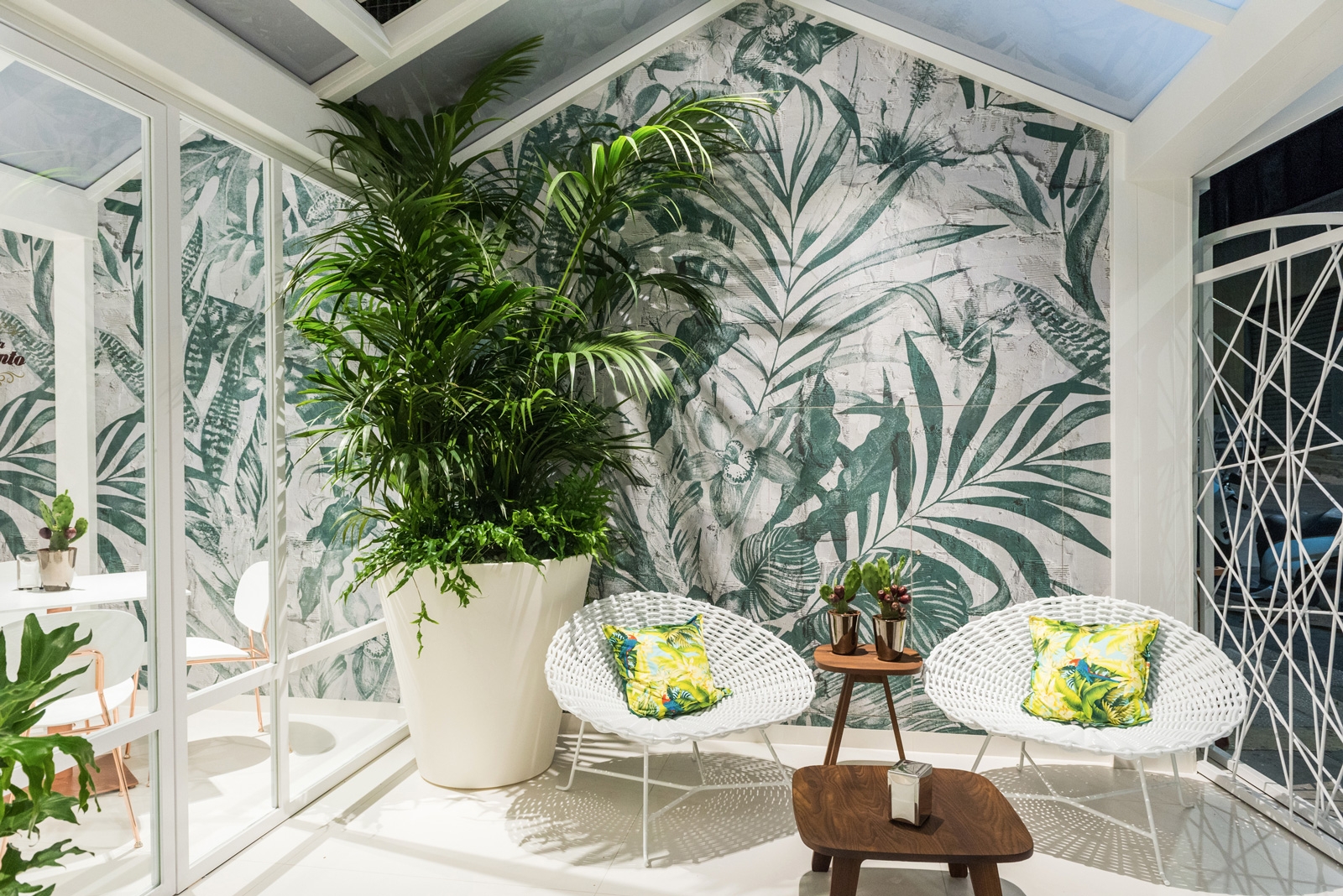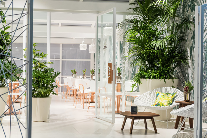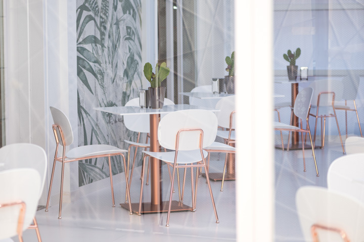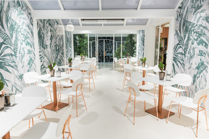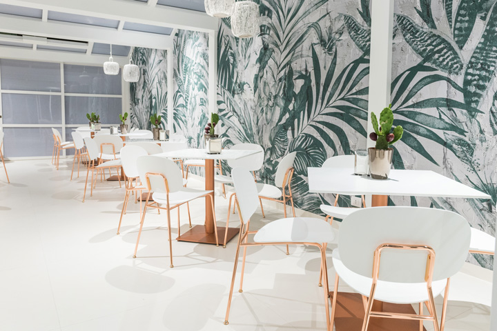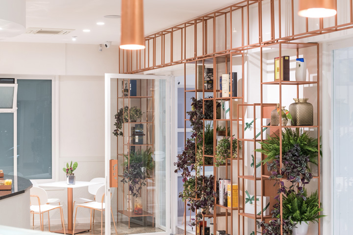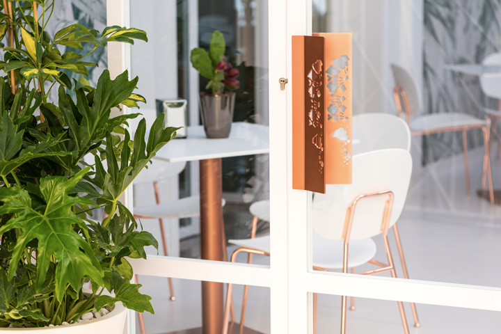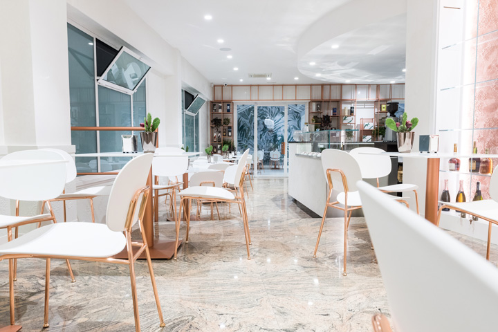 Il bar pasticceria Nuova Sorrento, ad Altamura, si ripropone con una “pelle” nuova, sobria ed elegante, che crea una continuità ed un legame tra spazio esterno ed interno. Il progetto di restyling si è concentrato soprattutto sulle superfici di pareti e arredi esistenti, trattate in gran parte con toni bianco latte e decori pizzo a rilievo, realizzati a mano, che si evidenziano sotto l’effetto della luce. Al candore del bianco latte si affianca la lucentezza del rame della scaffalatura a tutta parete e delle strutture di sedie e tavolini. L’ampio coffee garden esterno invece è stato rivestito con carta da parati con un forte richiamo al verde e ad un ambiente naturale dove gustare un buon caffè, in pieno relax, soprattutto nel periodo estivo.